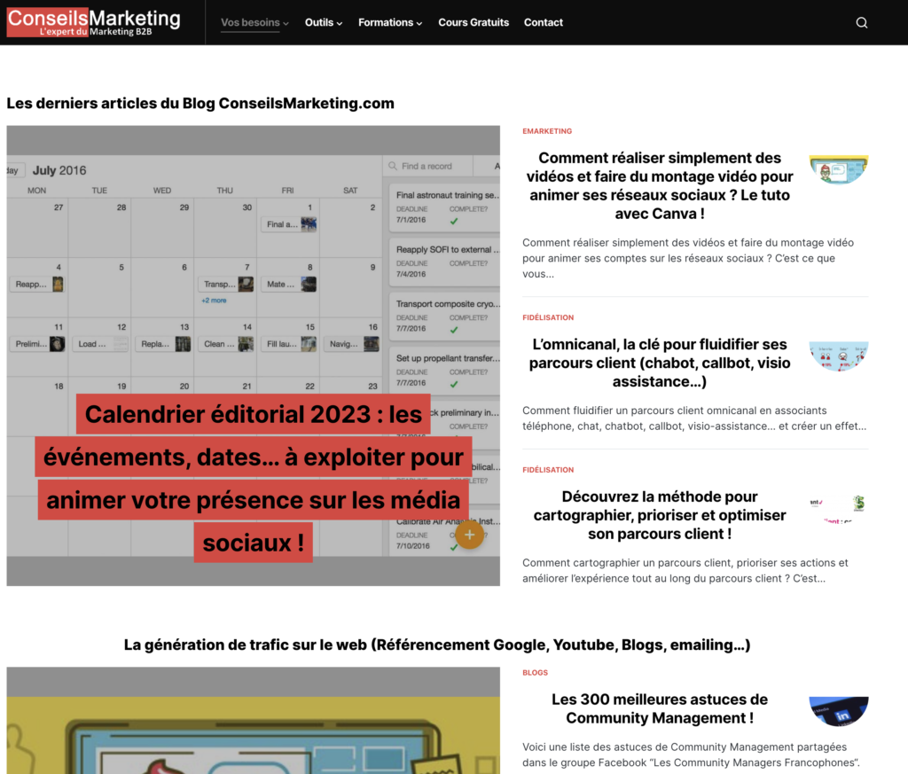 Vous cherchez des moyens nouveaux et créatifs d’atteindre vos clients ? Alors ne cherchez pas plus loin que ConseilsMarketing. Fondé par Frédéric Canevet en 2006, ConseilsMarketing est rapidement devenu une ressource essentielle pour les experts du secteur. Il propose des articles techniques efficaces sur des sujets tels que le commerce électronique, le growth hacking, les stratégies de vente et la fidélisation des clients. Avec un contenu couvrant un large éventail de concepts et de théories marketing pertinents pour le paysage numérique actuel, il n’est pas étonnant que les professionnels considèrent ce blog comme une référence incontournable !