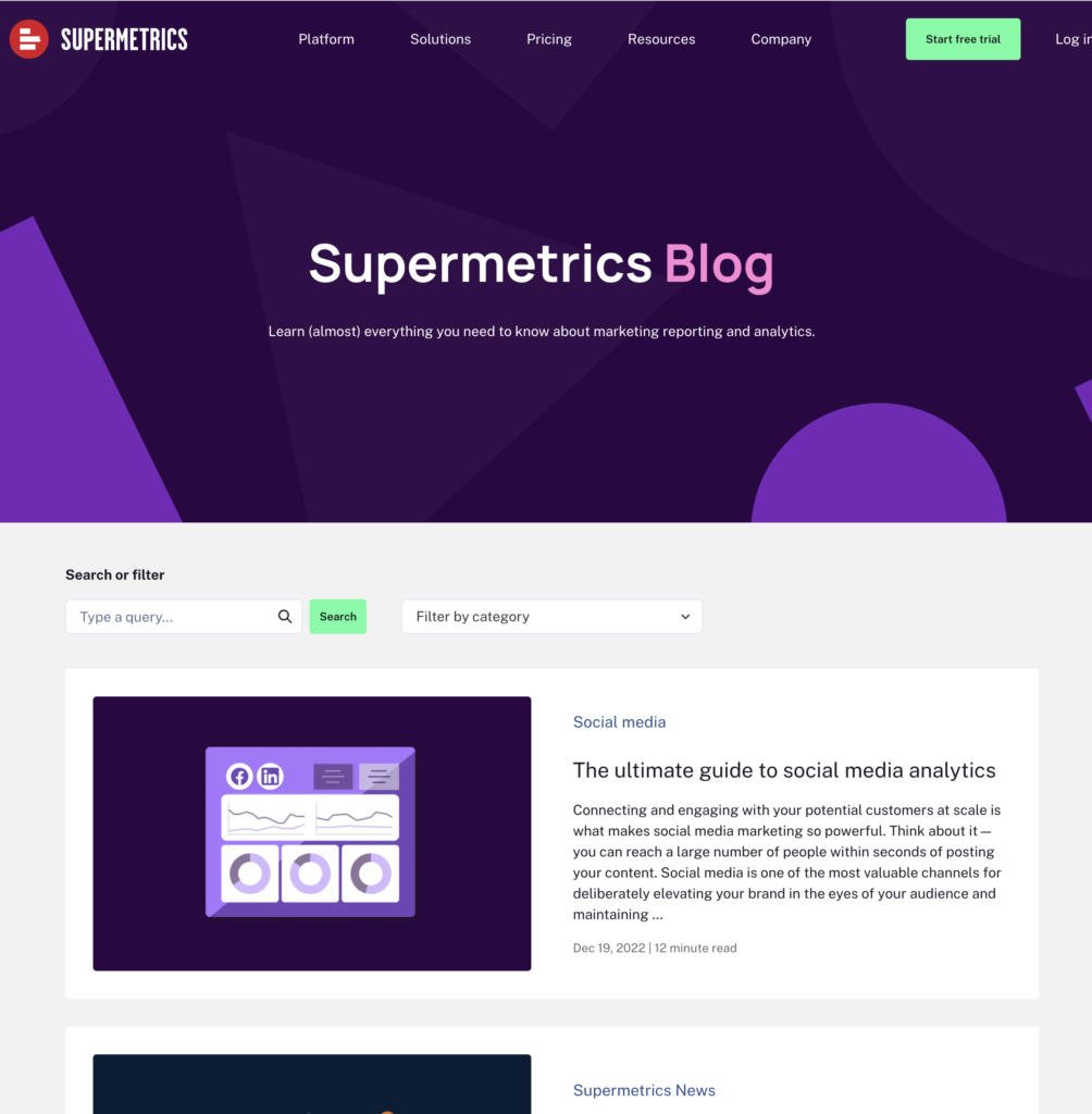 Supermetrics est un excellent connecteur de données. Compatible avec la plupart des grands outils du marketing BtoB (type Hubspot, Google, Linkedin…), il permet de synchroniser l’ensemble de ses données en un endroit central